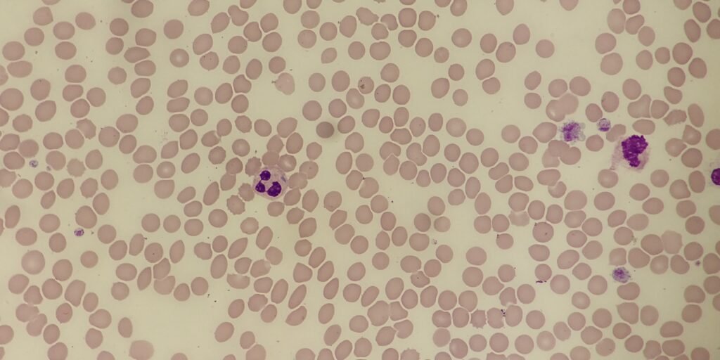 A 28-year-old female was referred to haematology after routine pre-operative blood tests revealed abnormalities on the full blood count. She reports occasional easy bruising but no significant bleeding history. There’s no recent infection, and she is otherwise well.